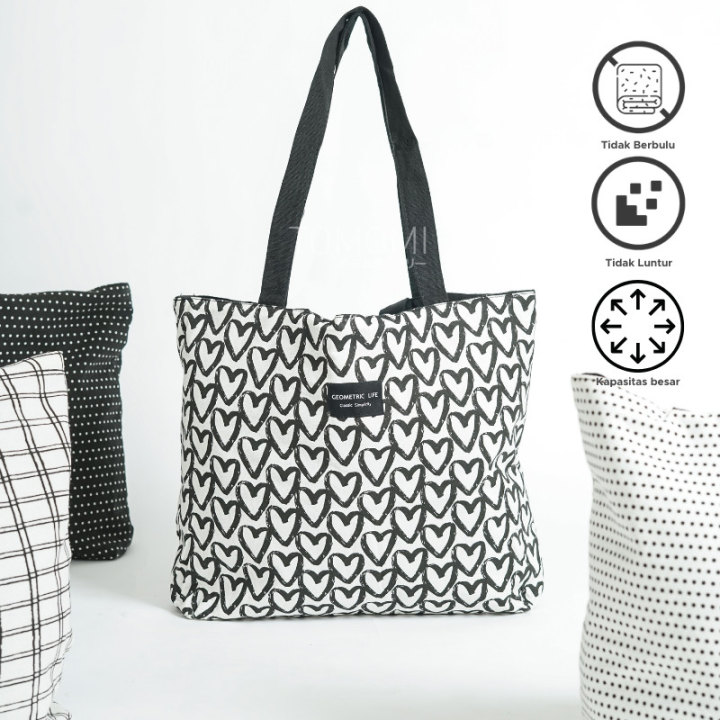 Totebag Tomomi dengan bahan Canvas. Motif dapat dibolak-balik.